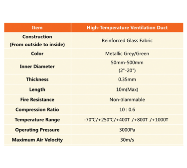 High - Temperature Ventilation Duct